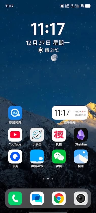 我还把手机上所有杂七杂八的应用都扔到一个文件夹中。把推送都关掉了。换了一个简洁深色的壁纸。现在它长这样: